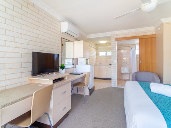 Our Accessible Twin Room caters for those requiring accessible facilities. This room has a Queen bed and a Single bed in the same room and it has a wheel chair accessible bathroom. Located on the ground floor near car parking area. Kitchenette with light cooking facilities. Microwave, jug, toaster and crockery. All of our rooms have FREE wifi and FREE parking.