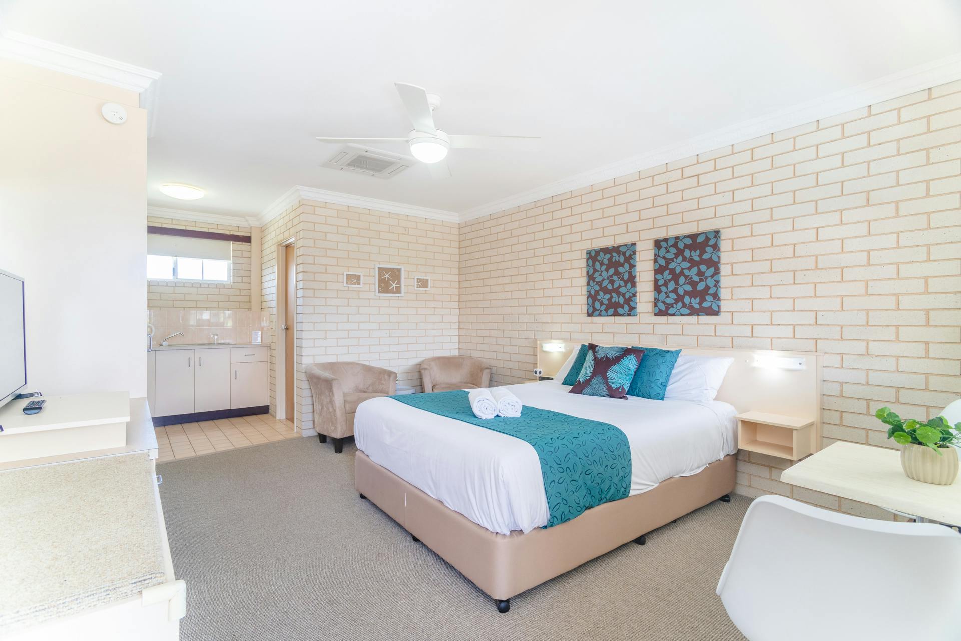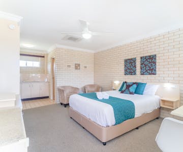 Our Deluxe Queen Rooms are perfect for a couple or the corporate traveller. These rooms have a queen bed and there are also light cooking facilities – microwave, jug, toaster, crockery, cutlery and bar fridge. You will have your own private ensuite with shower, toilet, hairdryer and complimentary toiletries. All of our rooms have FREE wifi and FREE parking.